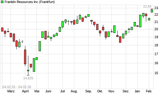Mit dem Anstieg auf 22,84 EUR hat die Franklin Resources-Aktie (ISIN US3546131018) am 03.02.2026 ein neues 12-Monats-Hoch erreicht und damit den Kurs vom 02.02.2026 eingestellt.