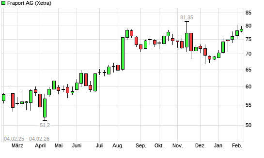 Mit dem Anstieg auf 78,45 EUR hat die Fraport-Aktie (ISIN DE0005773303) am 03.02.2026 ein neues 5-Jahres-Hoch erreicht und damit den Kurs vom 30.01.2026 eingestellt.