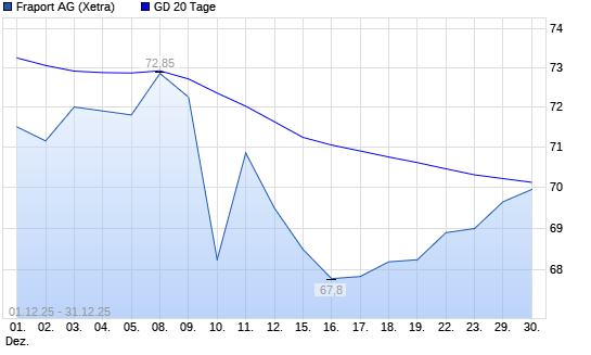 Mit dem Anstieg auf 69,60 EUR hat die Fraport-Aktie am 30.12.2025 die 20-Tage-Linie nach oben gekreuzt.