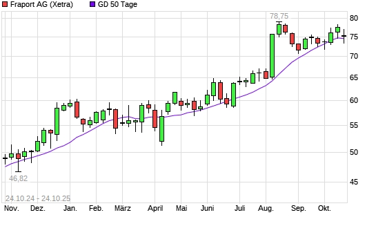 Mit dem Anstieg auf 74,55 EUR hat die Fraport-Aktie am 23.10.2025 die 50-Tage-Linie nach oben gekreuzt.