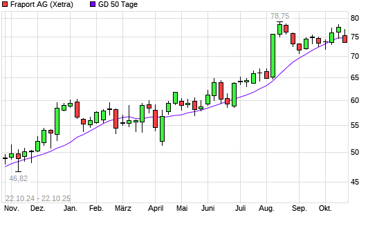 Mit dem Rücksetzer auf 74,15 EUR hat die Fraport-Aktie am 21.10.2025 die 50-Tage-Linie nach unten gekreuzt.