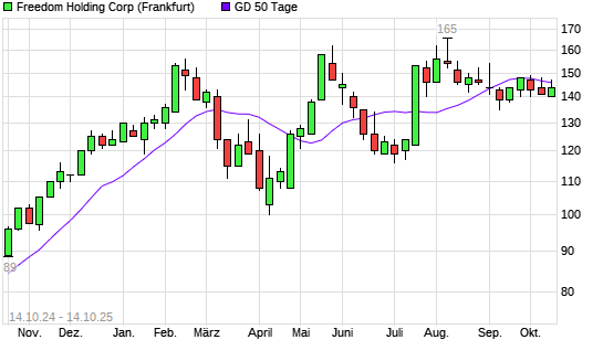 Mit dem Anstieg auf 147,00 EUR hat die Freedom Holding-Aktie am 13.10.2025 die 50-Tage-Linie nach oben gekreuzt.