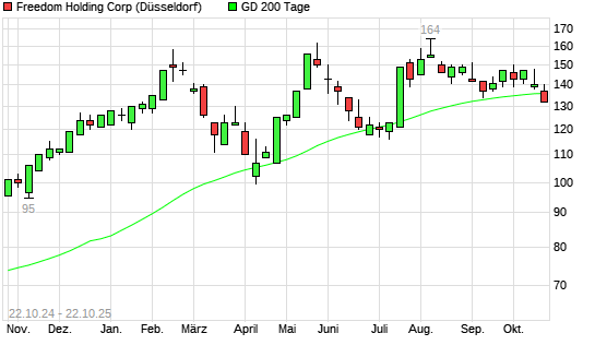 Mit dem Rücksetzer auf 133,00 EUR hat die Freedom Holding-Aktie am 21.10.2025 die 200-Tage-Linie nach unten gekreuzt.