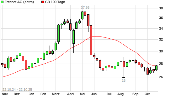 Mit dem Anstieg auf 27,76 EUR hat die Freenet-Aktie am 21.10.2025 die 100-Tage-Linie nach oben gekreuzt.