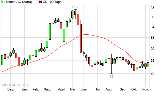 Mit dem Anstieg auf 28,06 EUR hat die Freenet-Aktie am 07.11.2025 die 100-Tage-Linie nach oben gekreuzt.
