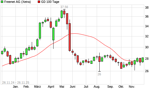 Mit dem Anstieg auf 28,16 EUR hat die Freenet-Aktie am 25.11.2025 die 100-Tage-Linie nach oben gekreuzt.