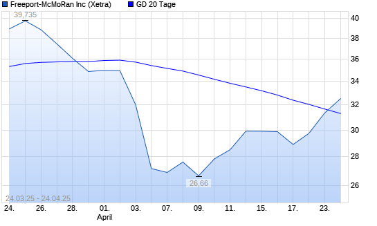 Mit dem Anstieg auf 30,94 EUR hat die Freeport-McMoran Copper-Aktie am 23.04.2025 die 20-Tage-Linie nach oben gekreuzt.