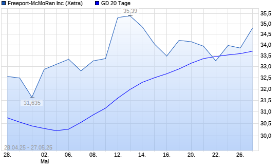 Mit dem Anstieg auf 34,20 EUR hat die Freeport-McMoran Copper-Aktie am 26.05.2025 die 20-Tage-Linie nach oben gekreuzt.