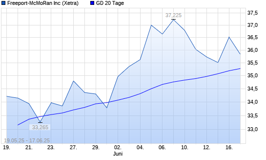 Mit dem Anstieg auf 36,49 EUR hat die Freeport-McMoran Copper-Aktie am 16.06.2025 die 20-Tage-Linie nach oben gekreuzt.