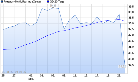 Mit dem Anstieg auf 38,65 EUR hat die Freeport-McMoran Copper-Aktie am 23.09.2025 die 20-Tage-Linie nach oben gekreuzt.