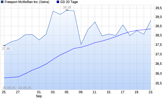 Mit dem Rücksetzer auf 37,82 EUR hat die Freeport-McMoran Copper-Aktie am 22.09.2025 die 20-Tage-Linie nach unten gekreuzt.