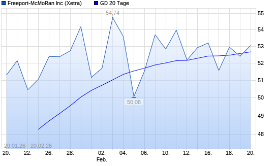 Mit dem Rücksetzer auf 52,42 EUR hat die Freeport-McMoran Copper-Aktie am 19.02.2026 die 20-Tage-Linie nach unten gekreuzt.