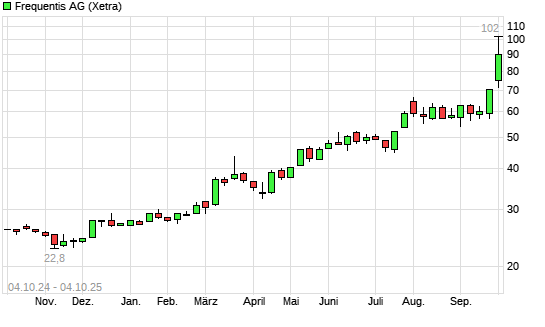 Mit dem Anstieg auf 93,40 EUR hat die Frequentis-Aktie (ISIN ATFREQUENT09) am 03.10.2025 ein neues All-Time-High erreicht und damit den Kurs vom 02.10.2025 eingestellt.