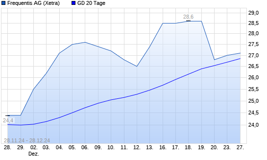 Mit dem Anstieg auf 27,10 EUR hat die Frequentis-Aktie am 27.12.2024 die 20-Tage-Linie nach oben gekreuzt.