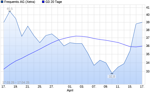 Mit dem Anstieg auf 38,40 EUR hat die Frequentis-Aktie am 16.04.2025 die 20-Tage-Linie nach oben gekreuzt.