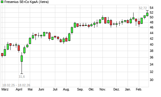 Mit dem Anstieg auf 52,02 EUR hat die Fresenius-Aktie (ISIN DE0005785604) am 17.02.2026 ein neues 5-Jahres-Hoch erreicht und damit den Kurs vom 14.01.2026 eingestellt.