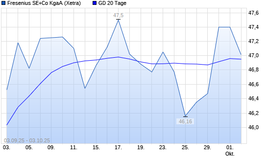 Mit dem Anstieg auf 46,88 EUR hat die Fresenius-Aktie am 02.10.2025 die 20-Tage-Linie nach oben gekreuzt.