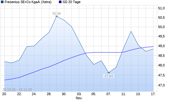 Mit dem Anstieg auf 49,00 EUR hat die Fresenius-Aktie am 17.11.2025 die 20-Tage-Linie nach oben gekreuzt.