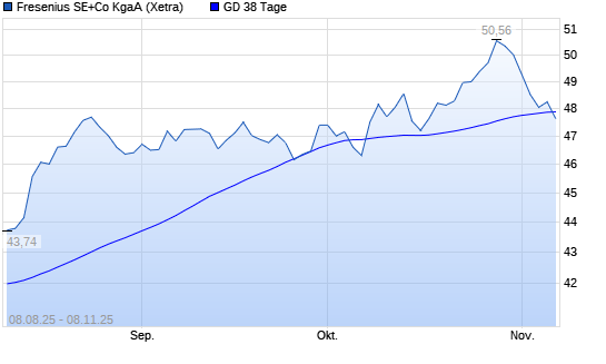 Mit dem Rücksetzer auf 47,60 EUR hat die Fresenius-Aktie am 07.11.2025 die 38-Tage-Linie nach unten gekreuzt.
