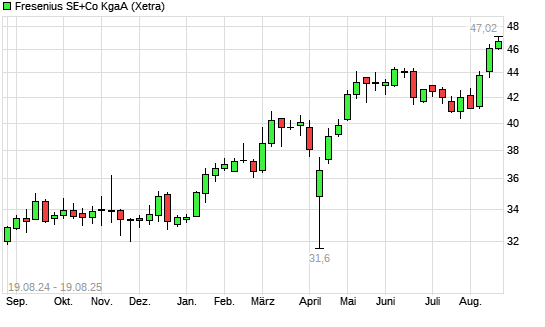 Mit dem Anstieg auf 46,51 EUR hat die Fresenius-Aktie (ISIN DE0005785604) am 18.08.2025 ein neues 3-Jahres-Hoch erreicht und damit den Kurs vom 14.08.2025 eingestellt.Die Fresenius-Aktie befindet ...weiterlesen