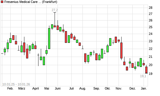 Mit dem Rücksetzer auf 19,10 EUR hat die Fresenius Medical Care ADR-Aktie (ISIN US3580291066) am 09.01.2026 ein neues 12-Monats-Tief erreicht und damit den Kurs vom 21.11.2025 eingestellt.