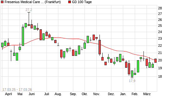 Mit dem Anstieg auf 20,20 EUR hat die Fresenius Medical Care ADR-Aktie am 16.03.2026 die 100-Tage-Linie nach oben gekreuzt.