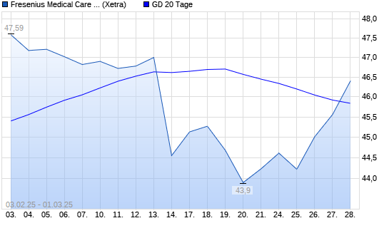 Mit dem Anstieg auf 46,54 EUR hat die Fresenius Medical Care-Aktie am 28.02.2025 die 20-Tage-Linie nach oben gekreuzt.