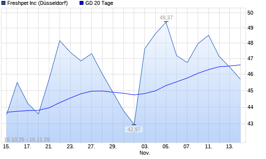 Mit dem Rücksetzer auf 45,60 EUR hat die Freshpet-Aktie am 14.11.2025 die 20-Tage-Linie nach unten gekreuzt.