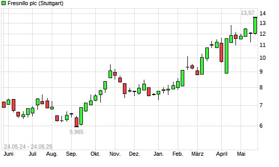 Mit dem Anstieg auf 13,96 EUR hat die Fresnillo-Aktie (ISIN GB00B2QPKJ12) am 23.05.2025 ein neues 3-Jahres-Hoch erreicht und damit den Kurs vom 22.05.2025 eingestellt.