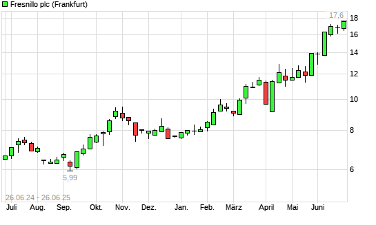 Mit dem Anstieg auf 17,09 EUR hat die Fresnillo-Aktie (ISIN GB00B2QPKJ12) am 25.06.2025 ein neues 5-Jahres-Hoch erreicht und damit den Kurs vom 13.06.2025 eingestellt.
