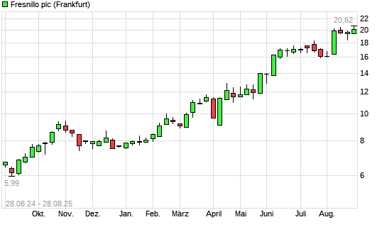 Mit dem Anstieg auf 20,50 EUR hat die Fresnillo-Aktie (ISIN GB00B2QPKJ12) am 27.08.2025 ein neues 5-Jahres-Hoch erreicht und damit den Kurs vom 11.08.2025 eingestellt.
