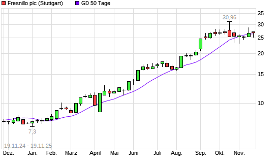 Mit dem Rücksetzer auf 25,60 EUR hat die Fresnillo-Aktie am 18.11.2025 die 50-Tage-Linie nach unten gekreuzt.