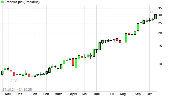 Mit dem Anstieg auf 30,00 EUR hat die Fresnillo-Aktie (ISIN GB00B2QPKJ12) am 13.10.2025 ein neues All-Time-High erreicht und damit den Kurs vom 22.09.2025 eingestellt.Die Fresnillo-Aktie befindet ...weiterlesen