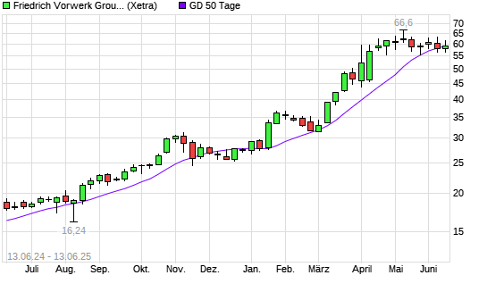 Mit dem Rücksetzer auf 59,10 EUR hat die Friedrich Vorwerk Group-Aktie am 12.06.2025 die 50-Tage-Linie nach unten gekreuzt.