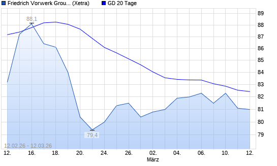 Mit dem Rücksetzer auf 82,60 EUR hat die Friedrich Vorwerk Group-Aktie am 11.03.2026 die 20-Tage-Linie nach unten gekreuzt.Die Friedrich Vorwerk Group-Aktie befindet sich seit ...weiterlesen