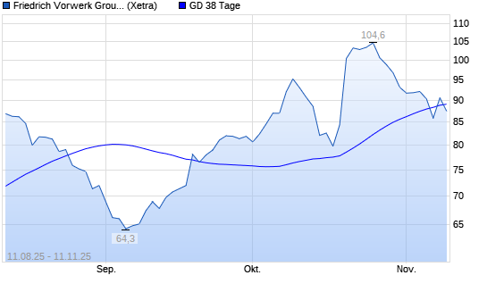 Mit dem Anstieg auf 91,30 EUR hat die Friedrich Vorwerk Group-Aktie am 10.11.2025 die 38-Tage-Linie nach oben gekreuzt.Die Friedrich Vorwerk Group-Aktie befindet sich seit dem 16.10.2023 im ...weiterlesen