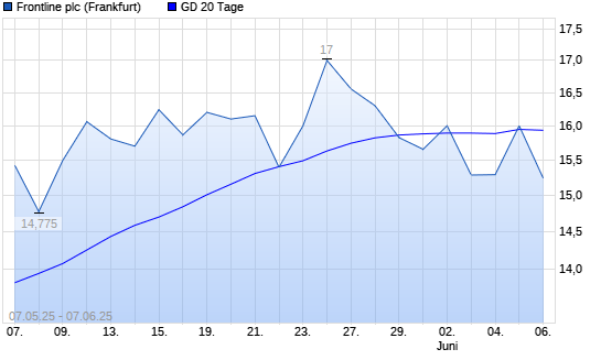Mit dem Rücksetzer auf 15,24 EUR hat die Frontline-Aktie am 06.06.2025 die 20-Tage-Linie nach unten gekreuzt.