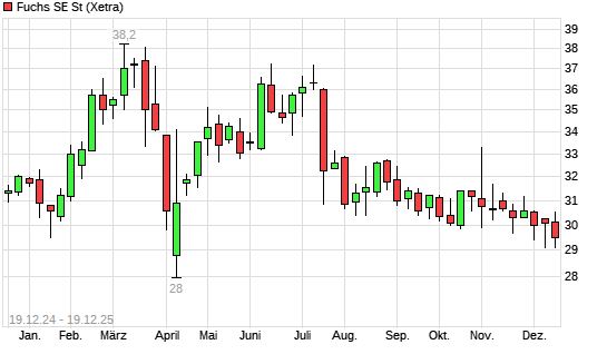 Mit dem Rücksetzer auf 29,35 EUR hat die Fuchs SE-Aktie (ISIN DE000A3E5D56) am 18.12.2025 ein neues 12-Monats-Tief erreicht und damit den Kurs vom 08.12.2025 eingestellt.