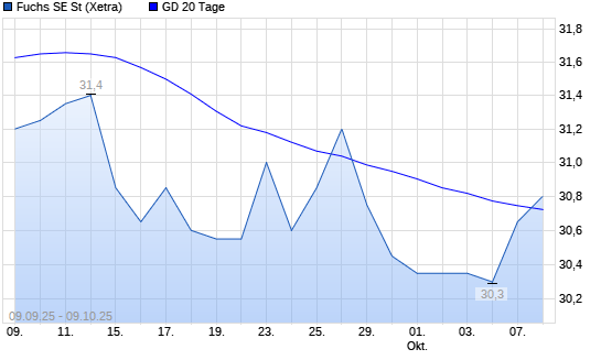 Mit dem Anstieg auf 30,95 EUR hat die Fuchs SE-Aktie am 08.10.2025 die 20-Tage-Linie nach oben gekreuzt.