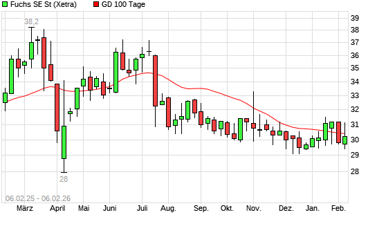 Mit dem Rücksetzer auf 29,95 EUR hat die Fuchs SE-Aktie am 05.02.2026 die 100-Tage-Linie nach unten gekreuzt.