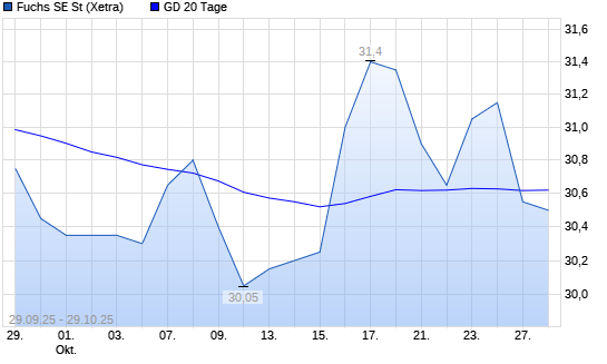Mit dem Rücksetzer auf 30,50 EUR hat die Fuchs SE-Aktie am 28.10.2025 die 20-Tage-Linie nach unten gekreuzt.