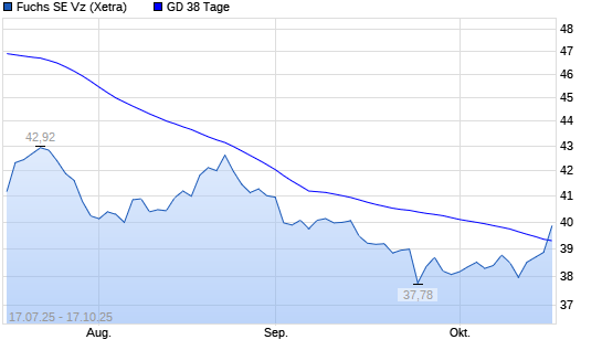 Mit dem Anstieg auf 39,52 EUR hat die Fuchs SE Vz-Aktie am 16.10.2025 die 38-Tage-Linie nach oben gekreuzt.