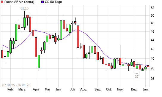 Mit dem Anstieg auf 38,54 EUR hat die Fuchs SE Vz-Aktie am 06.01.2026 die 50-Tage-Linie nach oben gekreuzt.