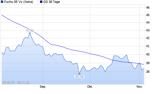Mit dem Rücksetzer auf 38,60 EUR hat die Fuchs SE Vz-Aktie am 04.11.2025 die 38-Tage-Linie nach unten gekreuzt.