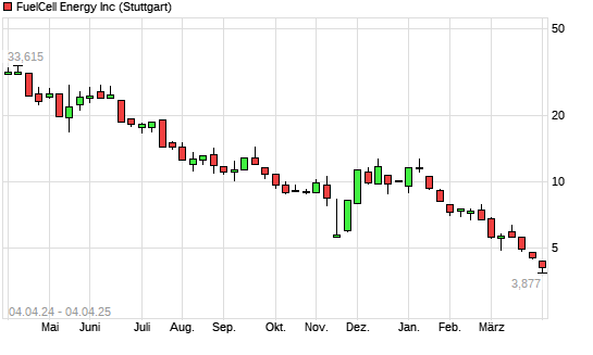 Mit dem Rücksetzer auf 4,18 EUR hat die FuelCell Energy-Aktie (ISIN US35952H7008) am 03.04.2025 ein neues 5-Jahres-Tief erreicht und damit den Kurs vom 01.04.2025 eingestellt.