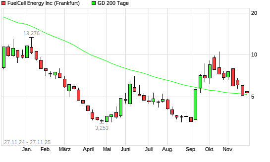 Mit dem Anstieg auf 5,36 EUR hat die FuelCell Energy-Aktie am 26.11.2025 die 200-Tage-Linie nach oben gekreuzt.