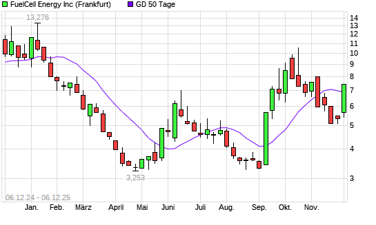 Mit dem Anstieg auf 7,42 EUR hat die FuelCell Energy-Aktie am 05.12.2025 die 50-Tage-Linie nach oben gekreuzt.