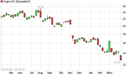 Mit dem Rücksetzer auf 13,23 EUR hat die Fugro-Aktie (ISIN NL00150003E1) am 02.04.2025 ein neues 12-Monats-Tief erreicht und damit den Kurs vom 01.04.2025 eingestellt.