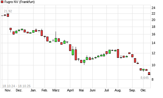 Mit dem Rücksetzer auf 8,65 EUR hat die Fugro-Aktie (ISIN NL00150003E1) am 17.10.2025 ein neues 3-Jahres-Tief erreicht und damit den Kurs vom 16.10.2025 eingestellt.