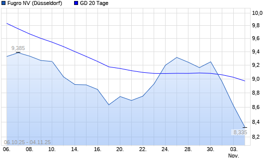 Mit dem Rücksetzer auf 8,84 EUR hat die Fugro-Aktie am 03.11.2025 die 20-Tage-Linie nach unten gekreuzt.